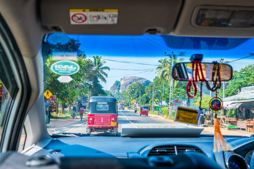 För kortare sträckor är det väldigt enkelt att åka tuk-tuk. Det är ett smidigt sätt att åka runt på. Appen PickMe används flitigt på Sri Lanka för att boka både taxi och tuk-tuk. Den funkar precis som Uber där man i appen skriver vilken sträcka man vill åka och så väljer man tuk-tuk eller taxi och så vidare. Skillnaden är att man betalar kontant efter resan direkt till chauffören.