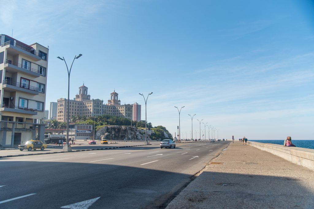Malecón är 8 km lång och sträcker sig längs kusten längs hela Havannas innerstad. Den började byggas 1901 för att skydda Havanna från havets vågor som här slår in mot staden. Det är alltså både en mur som skydd mot vågorna, en promenad och en stor, bred väg. Det finns inga övergångsställen på den här vägen (eller nånstans för den delen) så det gäller att hålla koll åt alla håll och med snabba steg skynda sig över gatan. Alltid lika spännande…