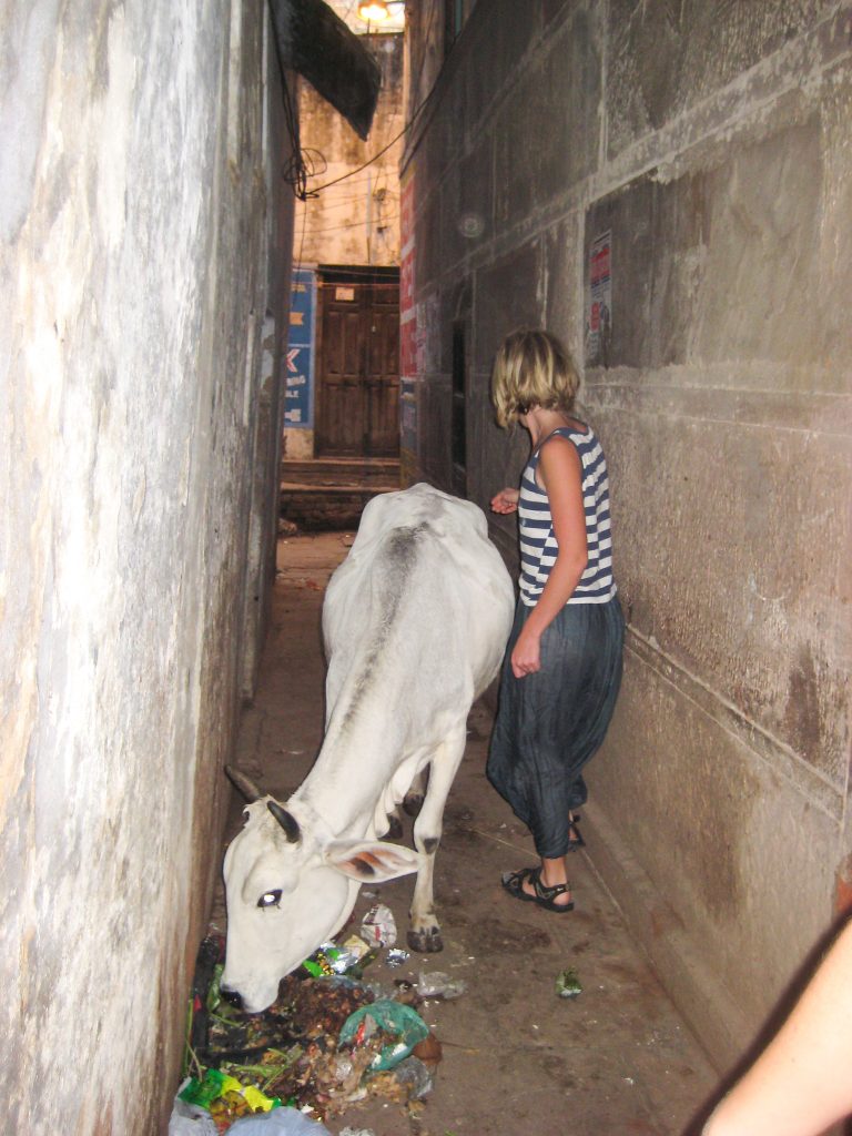 Like many other cities in India it is really crowded. The roads are full of people, bikes, cars, tuk-tuks and animals. Many streets are narrow and every once in a while there is a cow in the middle of it that you have to pass to get to your hostel.